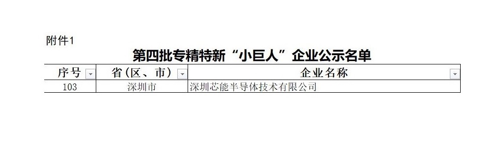 近日,國家工業(yè)和信息化部公布了第四批國家專(zhuān)精特新“小巨人”企業(yè)公示名單,深圳芯能半導體技術(shù)有限公司順利通過(guò)工信部的認定審核和公示,榮獲國家專(zhuān)精特新“小巨人”企業(yè)認證。